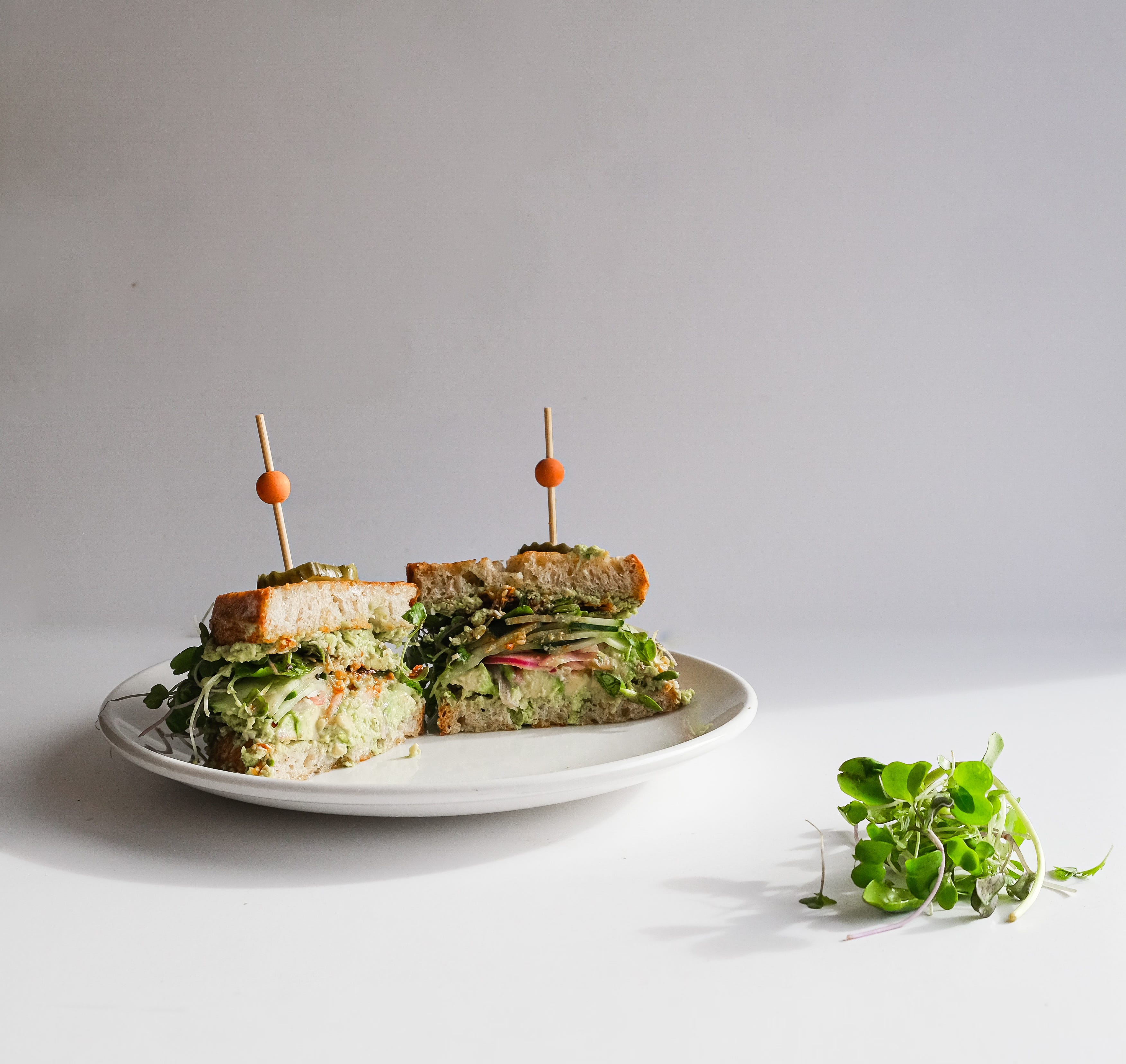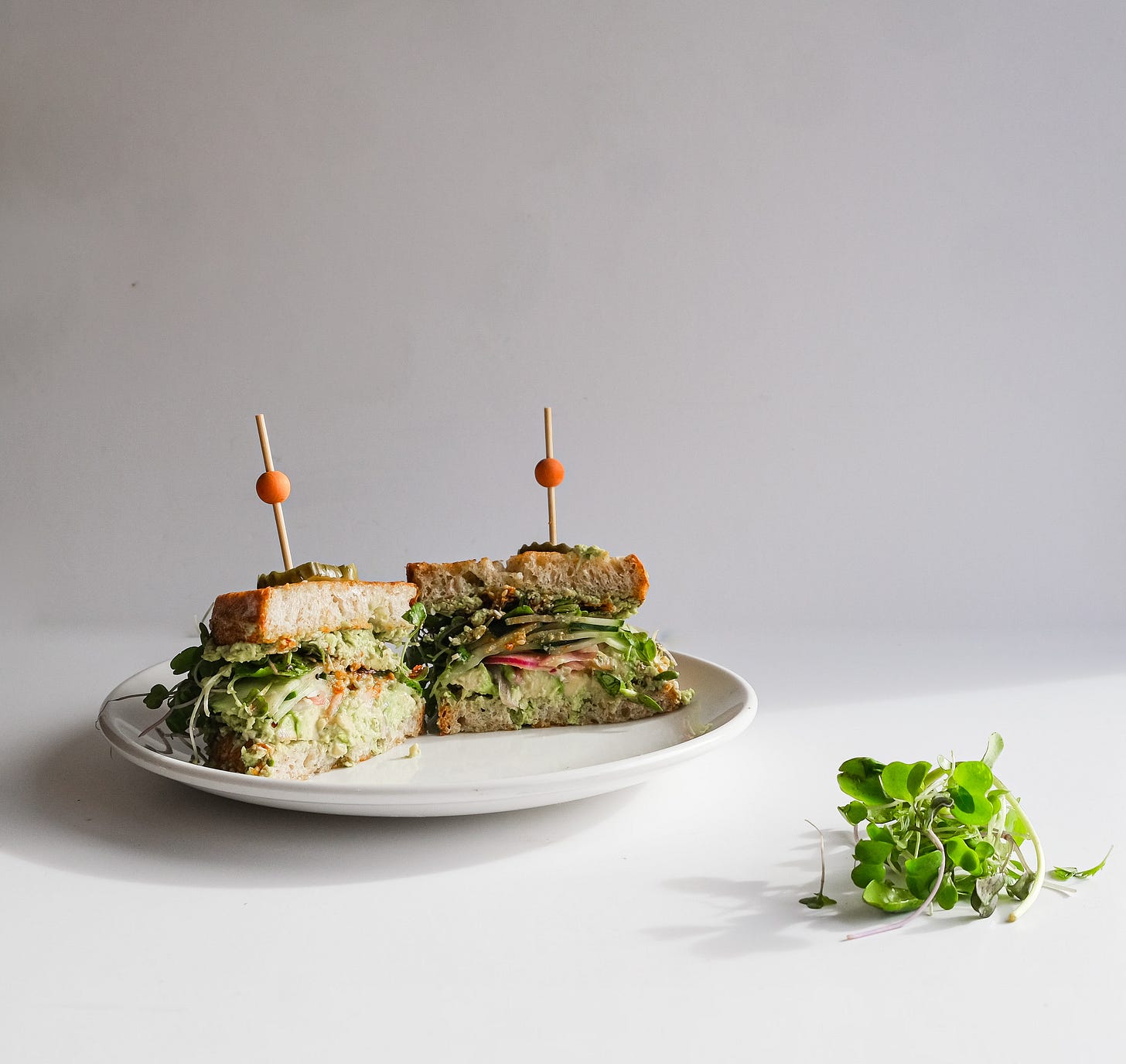 Sourdough rustic white | lemon edamame spread | sesame seeds | avocado | cucumber | pickled red onion | microgreens | chili crisp